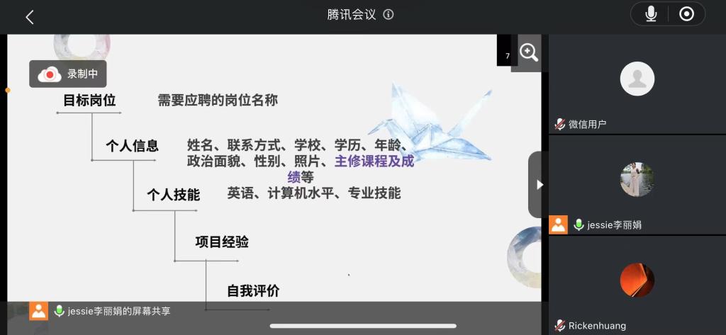 李导师围绕当前就业形势、简历结构化、在简历中体现软实力、写好三无简历、常见简历误区、案例分享六个方面进行细致详尽的讲解,同时还分享了STAR面试演说模型、简历制作三大原则、四大核心能力等干货。