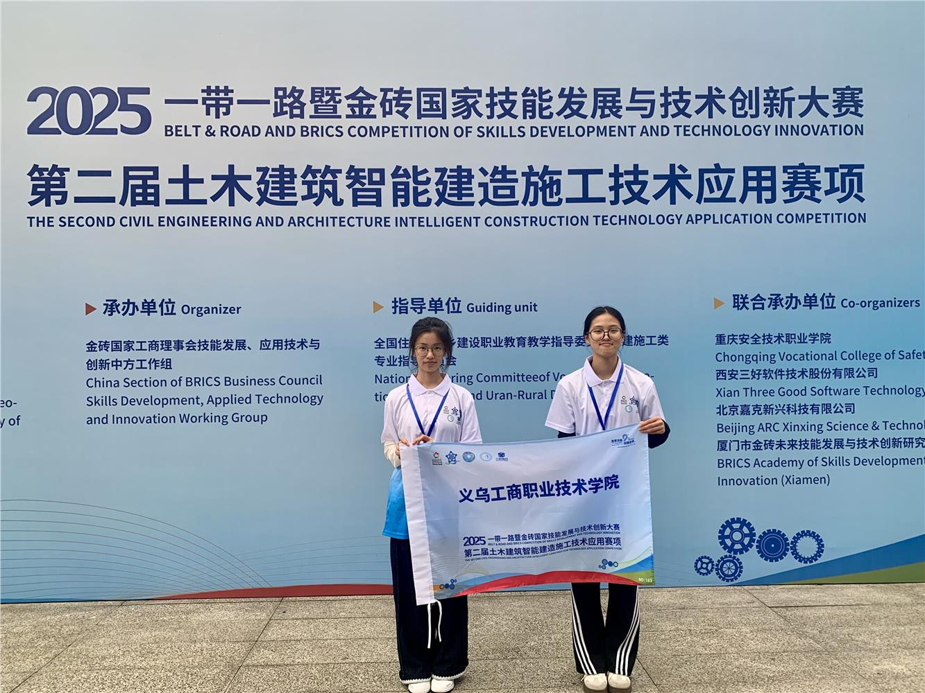 10月19日,由金砖国家工商理事会中方理事会、“一带一路”暨金砖国家技能发展国际联盟等单位主办的2025“一带一路”暨金砖国家技能发展与技术创新大赛(第二届土木建筑智能建造施工技术应用赛项),在重庆安全技术职业学院落下帷幕。本次比赛共有298支队伍参加,分为中职和高职本科国际两个赛道,其中高职共有134支队伍。参赛选手们经过激烈角逐,我校永利总站yylcc的朱伊一和詹祺欢团队获得了二等奖的好成绩,不负之前一起付出的共同努力。